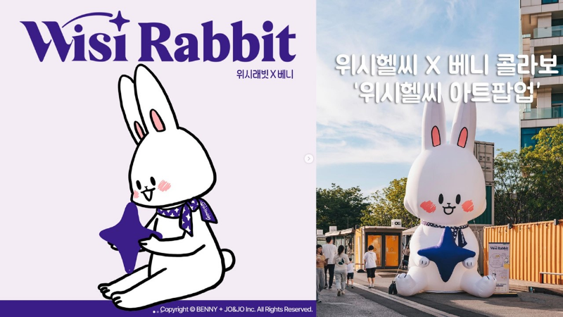 위시헬씨는 삼진제약의 건기식 브랜드라고 합니다. 베니 캐릭터를 활용해서 위시래빗이라는 캐릭터를 통해 아트 팝업스토어를 오픈했네요. 베니는 청각장애를 가지고 있는 구경선 작가의 캐릭터입니다. 세상의 소리를 듣고 싶다는 생각에서 귀가 긴 토끼를 그려오신 것으로 알려져 있습니다. 베니는 프라다, 이니스프리, 현대모터스, 세이브칠드런 등과 콜라보를 하면서, 꾸준히 작품 활동을 하고 있습니다.위시헬씨라는 브랜드 네이밍을 고려해서, 소원을 들어주는 달토끼로 기존에 베니 캐릭터를 활용해서 위시래빗을 스토리로 기획한 것으로 생각되네요. 기존에도 아트 콜라보는 사례는 많긴 하지만, 건기식에서 이런 시도를 하는 부분은 새로운 접근이라는 생각이 들기도 합니다. 그리고 건기식 브랜드가 팝업 스토어를 전개한다는 부분도 보수적인 제약사 특성상 쉽지 않은 결정이지 않았을까 하는 생각도 드네요. 그리고 캐릭터가 가진 친숙함이 있기 때문에 인지도가 높지는 않은 브랜드이다보니, 친숙하게 소비자를 만날수 있는 계기가 되었을 것으로 예상됩니다. 아트 마케팅은 뷰티 브랜드에서 많이 시도해 오던 방식이긴 합니다. 대표적으로 닥터자르트가 눈에 띄는 사례들이 많기 합니다. 팝업스토어는 아니지만, 플래그십 스토어를 통해 아트프로젝트를 진행하면서, 이색적인 경험을 제공하는 공간으로 활용을 하고 있습니다.