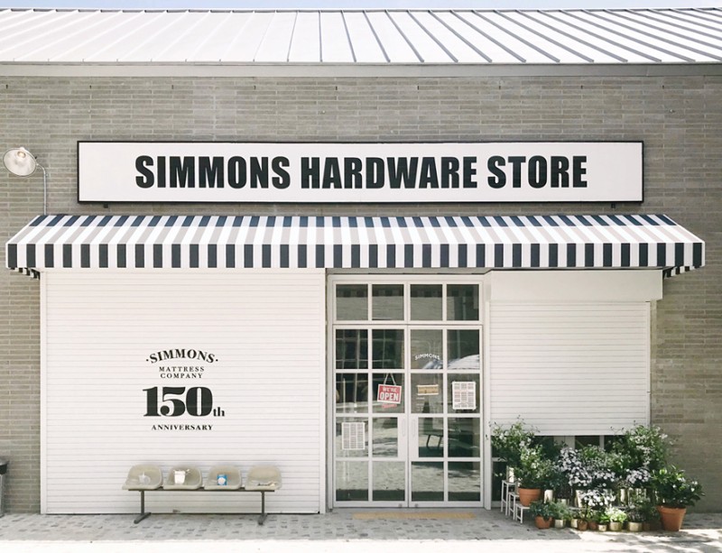 침대 브랜드가 이렇게 브랜드, 광고를 만들 수 있구나라는 새로운 이정표를 만들어주고 있는 시몬스의 팝업스토어는 시몬스 하드웨어스토어(SIMMONS HARDWARE STORE)입니다. 광고에서 보여준 것처럼 침대는 없다는 것이 가장 큰 특징 중 하나이긴 합니다. 마치 공장에서 쓸만한 아이템과 라이프스타일 굿즈로 가득한 시몬스 하드웨어스토어는 제품을 체험하는 용도의 팝업스토어라기 보다는 브랜드가 가진 감성과 트렌드를 느끼게 하는 공간으로 설계된 것으로 보여집니다. 과거 공장지대였던 성수동이라는 지역의 특성을 맞게 팝업스토어를 전개했다는 점에서 기존 브랜드가 하는 방식과는 차이가 있다고 생각되네요. 이를 로컬소셜라이징이라고 합니다. 지역의 특성을 기업에 반영하여 해당 지역의 주민들과 함께 할 수 잇는 방식으로 공간을 디자인하고 커뮤니케이션한다는 특징을 가지고 있습니다. 시몬스는 성수동을 선택하면서, 점프 슈트, 헬멧, 스패너 같은 하드웨어 스토어에 있을법한 것을 전시하는 방식의 전개는 시몬스가 팝업스토어를 바라보는 관점 역시도 다르다는 점을 쉽게 알 수 있을 것입니다.