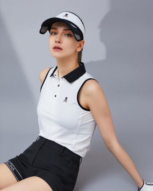 럭셔리 골프를 콘셉트로 프레피 펑크, 마린 등 색다른 럭셔리 골프웨어 브랜드로 프레피룩은 미국 동부 명문사립고교에서 배우는 자녀를 뜻하며 그들이 즐겨 입는 심플하고 클래식한 복장을 프레피룩이라 하는데요. 여기에 1976년 런던에 나타난 록밴드의 무대의상에서 시작된 반항적이고 스모키한 펑크룩이 결합된 스타일이라고 보시면 될 것 같습니다. 마린은 해병, 해군 스타일에서 모티브를 얻은 룩이라고 생각하시면 좋을 듯 합니다. 마크앤로나는 브랜드 이름의 유래는 할리우드의 커플에서 시작되었다고 하는데요. 마크는 전세계를 대상으로 무역회사를 경영하고, 로나는 할리우드 유명배우들의 메이크업 아트스트였다고 합니다. 커플의 자유로운 라이프스타일이 모티브가 되면서 모던하면서도 키치한 디자인으로 탄생한 브랜드라고 합니다. 마크앤로나에 해골은 아이언을 활용했네요.