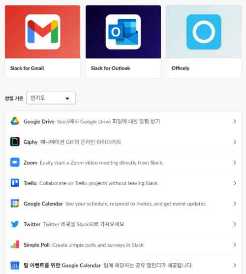 구글캘린더, 구글 드라이브, 드롭박스 등 다양한 생산성 앱들과 연동이 가능하기 때문에 슬랙으로 모든 업무와 관련된 생산성 앱들을 연동함으로 업무의 효율성을 만들어갈 수 있다는 부분도 매우 편리한 기능인 것 같습니다. 팀원들이나 조직원들에게 의견을 물어볼 수 있는 투표기능이 있는 심플 폴(Simple Poll)이 있어서 투표를 통한 의견을 정할 수 있다는 점도 편리한 기능 중에 하나일 것입니다.